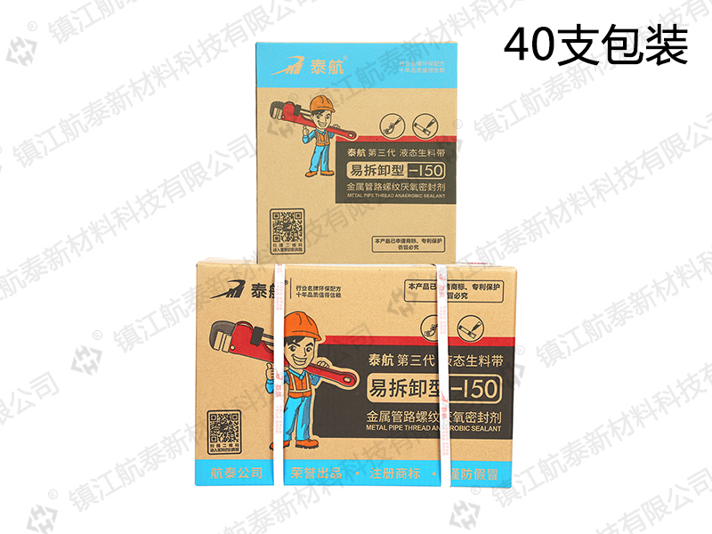 | 泰航150 紫色 (第三代) | 180克/支 | 45000~75000 | -55~135℃ | 50 kg/c㎡ | 0.25mm | 8-20N.M 易拆卸 | 20min初固24h全固 | 操作方便,適用管螺紋和法蘭,管徑DN15~DN150,首選重點(diǎn)推薦。 |